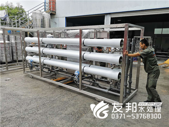 化工行業(yè)對水質(zhì)要求比較嚴(yán)格,使用純凈水設(shè)備也是越來越普遍,今天在鄭州友邦工廠里這套40噸的反滲透純凈水設(shè)備就是發(fā)往湖北用于化工行業(yè)生產(chǎn)用水。